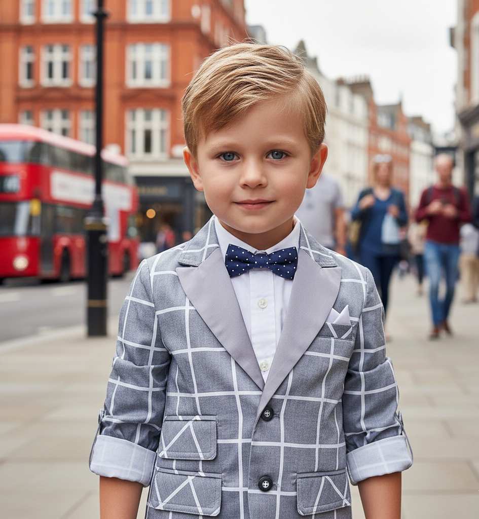 Boys Grey Formal Blazer | Elegant V-Neck Suit Jacket | Ages...