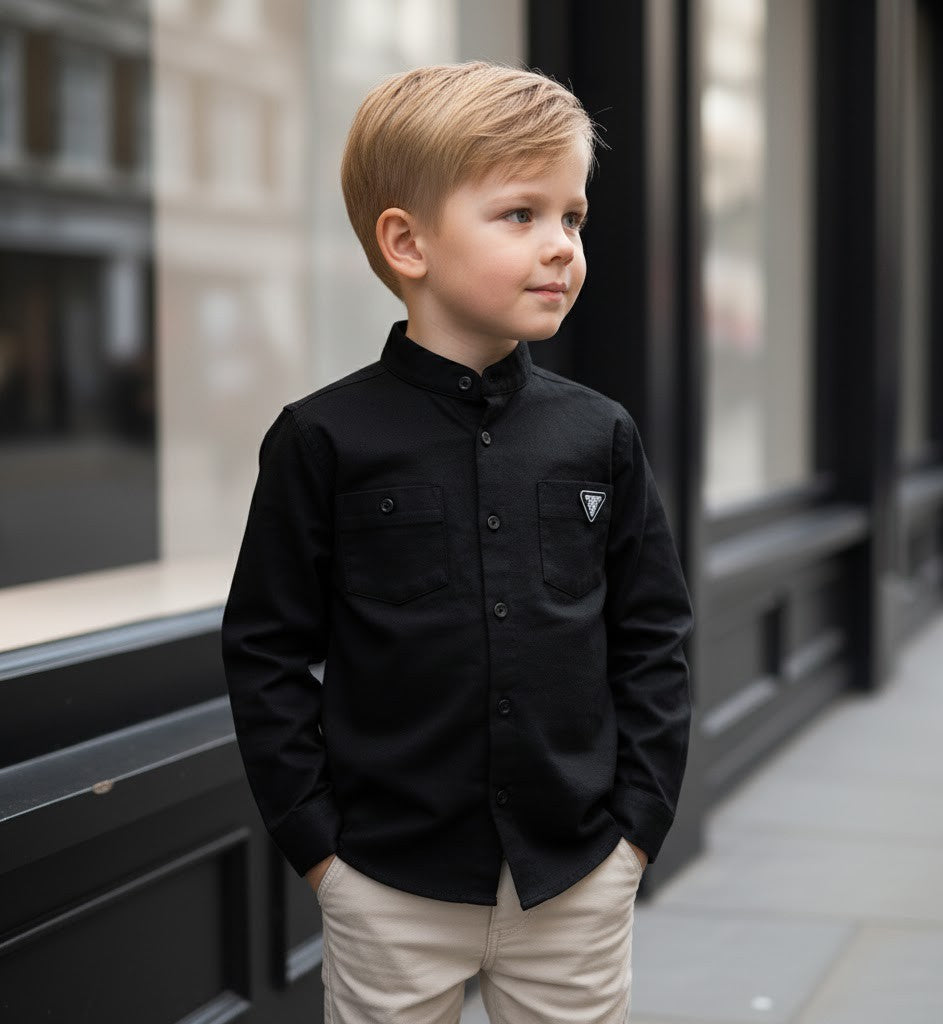 Boys Black Cotton Long Sleeve Shirt – Lightweight & Stylish Top for Ages 3-7 Yea