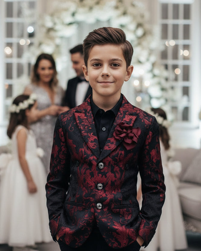 Boys Gold Jacquard Blazer – Tailored Formal Jacket for Weddings, Parties & Ceremony Wear (Ages 8–12)