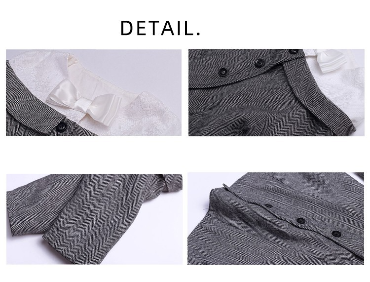 Baby Girl Woolen Party Dress 4-7Y vintage design Princess Mini Dress coat