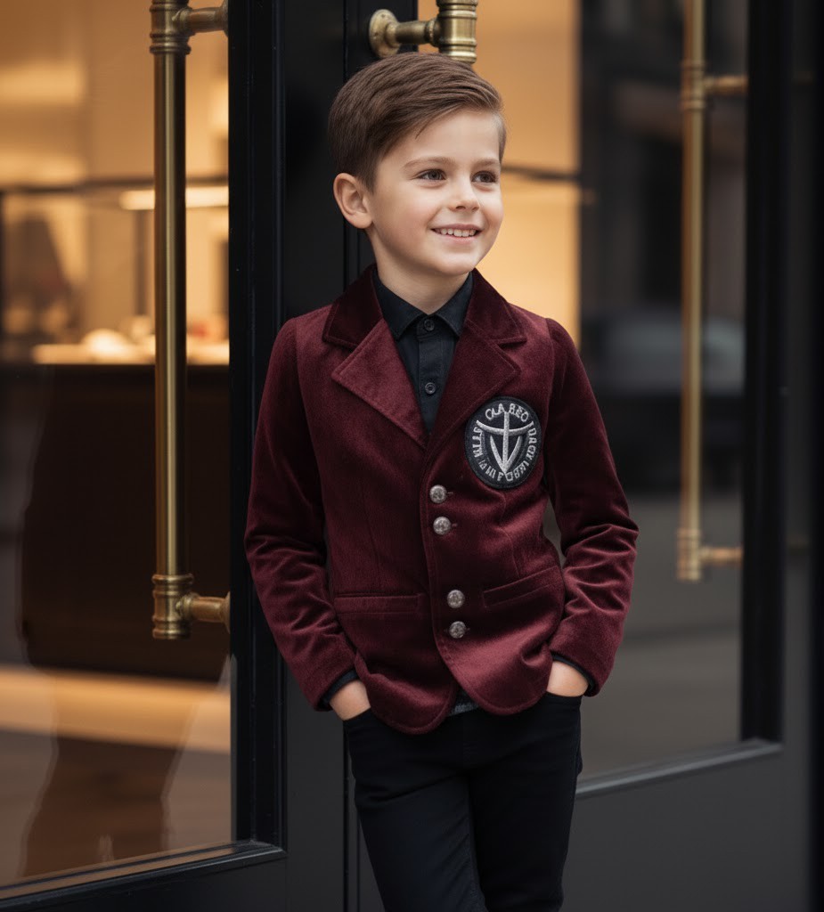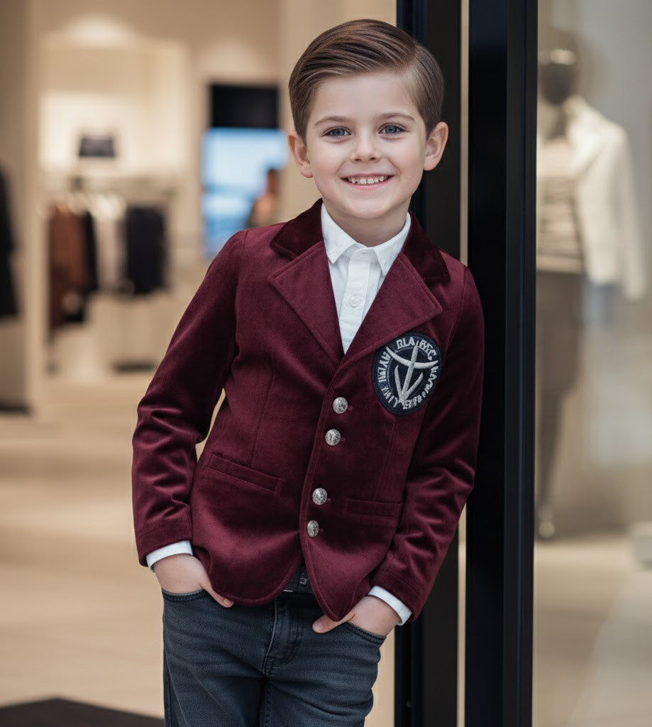 Β π΄οΈ Boy's Wine Red Velvet Blazer β Slim Fit Formal Party & Dinner Jacket (Ages 4β12 Years)