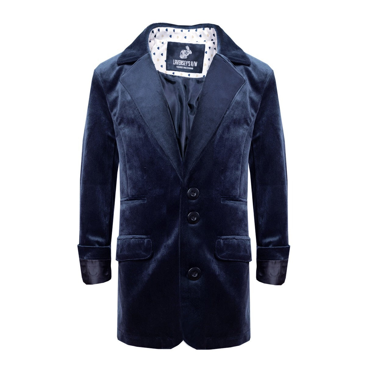 Boys navy Blue Velvet Blazer Long Formal Suit Jacket Casual party top 6-9 Years