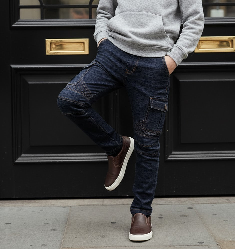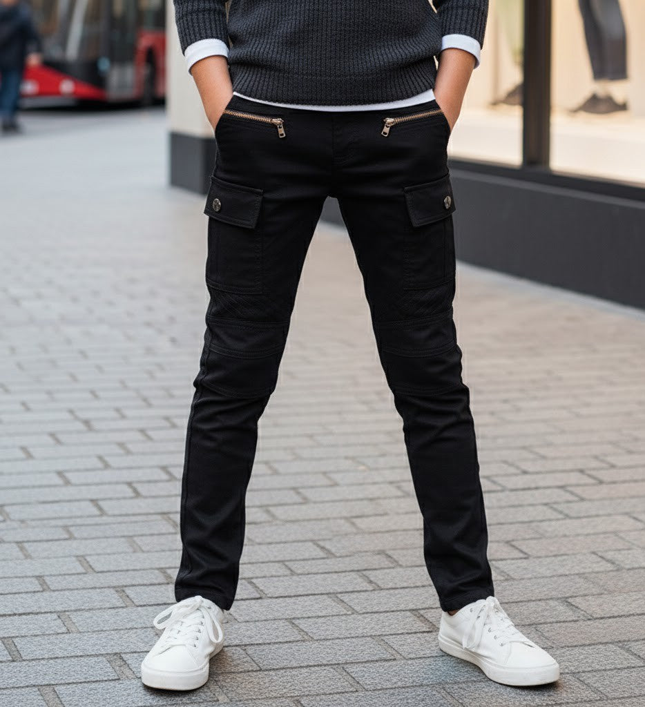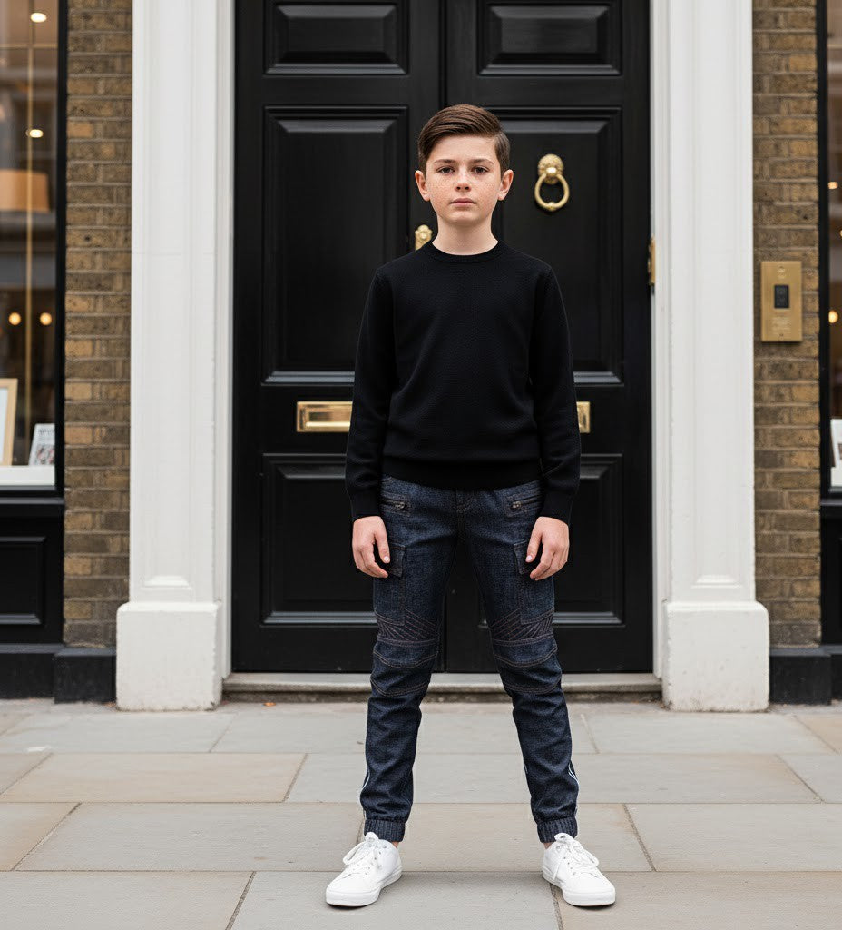 Boys' Stretch Denim Casual Pants – Blue & Black Cotton Trousers | Ages 4–12 Years