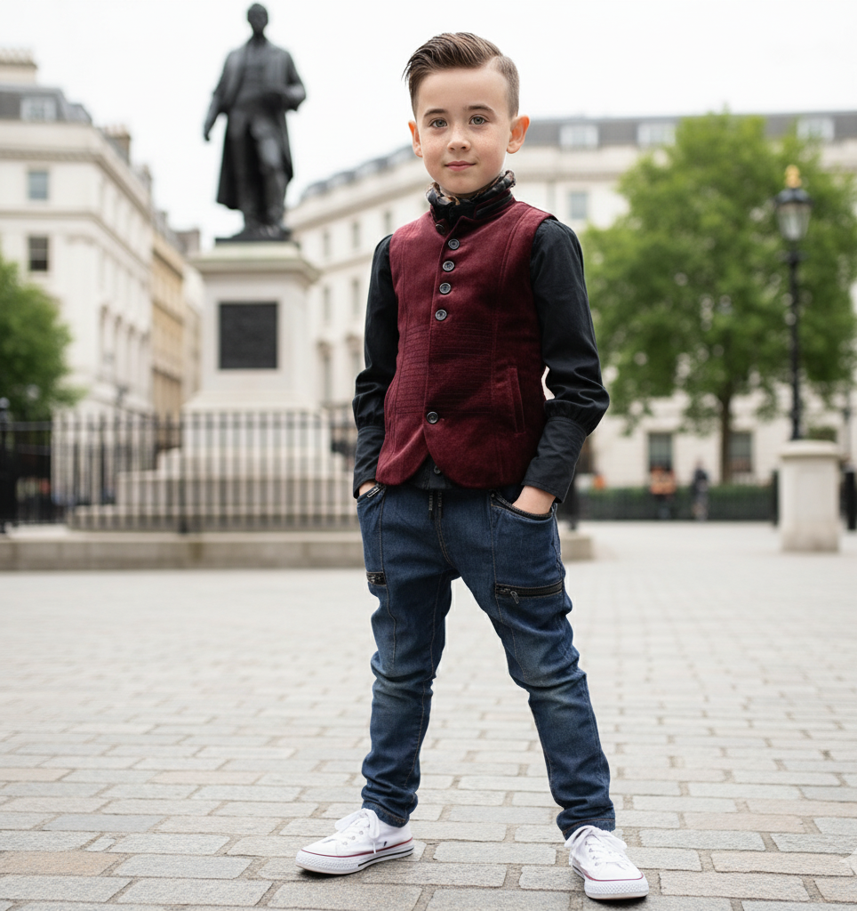 Boys Vintage Style Waistcoat | Sleeveless Velvet Cotton Vest | Smart Uniform Look | Ages 3–10