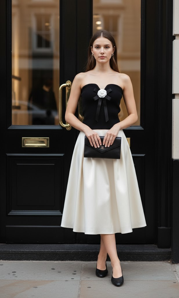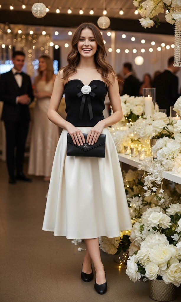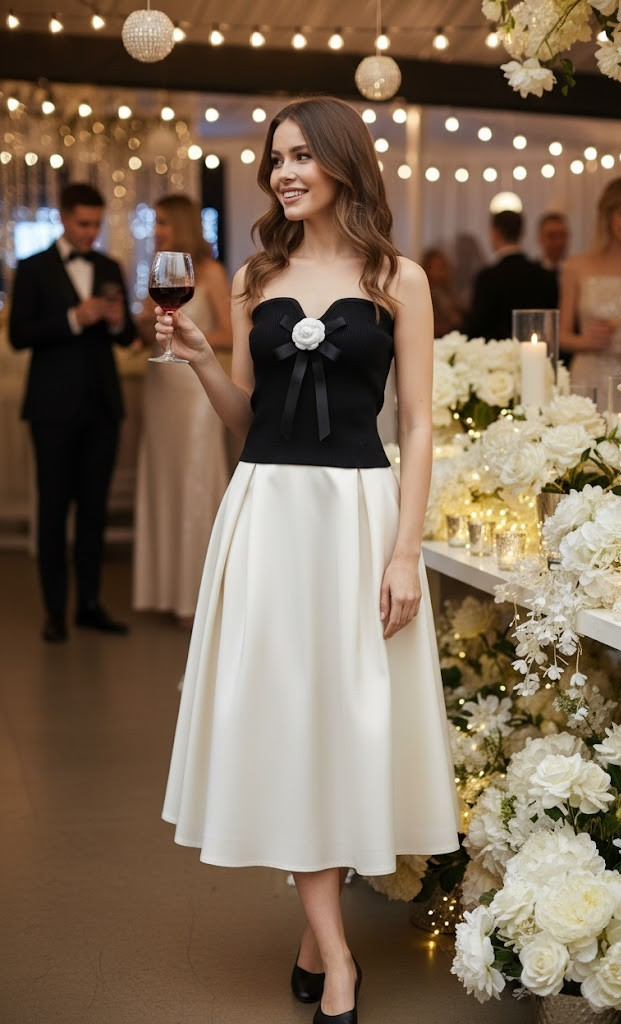The overall match is very elegant after wearing it, suitable for various gatherings. The black tube top is made of woolen vertical thread with great elasticity. The skirt is made of shiny fine twill polyester fabric, which is easy to wash and maintain.