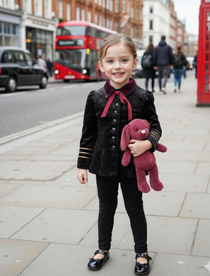 Dress your little one in elegant charm with this Girls Short Wool Blend Jacket, finished with a beautiful velvet trim and tailored slim fit. Perfect for autumn and winter layering, this classy piece adds a polished touch to any outfit—ideal for school, parties, and special occasions.