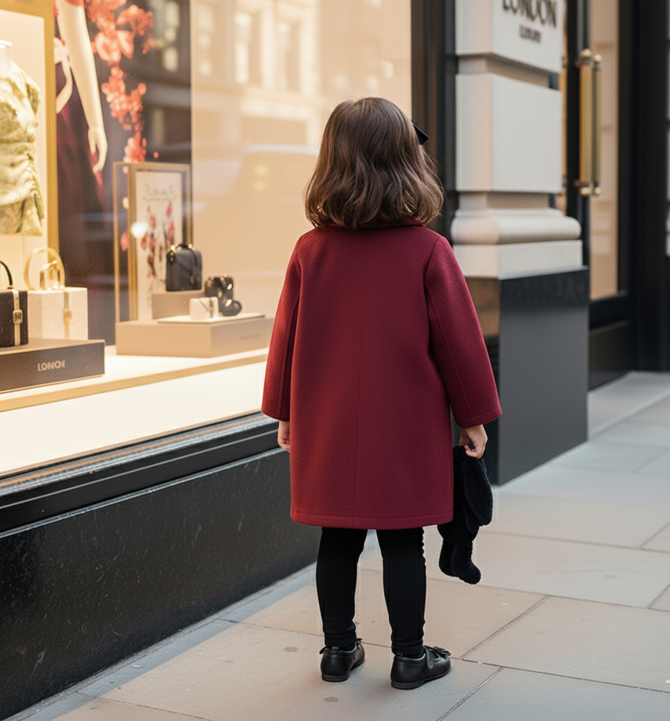 π Girls Cashmere Long Coat | Baby Doll Style | Ages 2β5 | Wine Red | by LAVANZEY