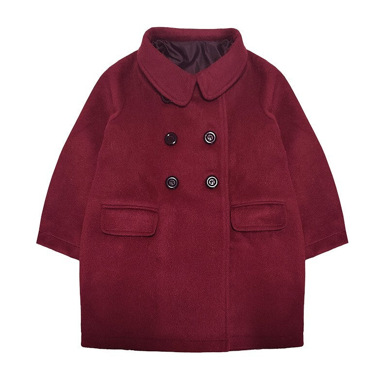 Girls Cashmere autumn Coat Baby Doll Style 2-3-4-5Years old Wine Red toddler