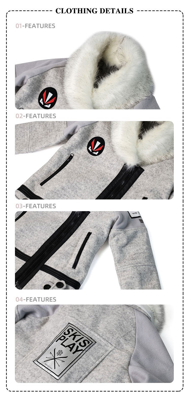 🐾 Detachable Faux Fur collar– Soft, stylish, and warm