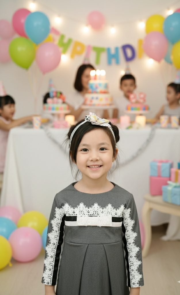 Make every occasion magical with this beautifully crafted girls' lace party dress. Featuring 3/4 sleeves and a flowing A-line silhouette, this princess-style gown is perfect for birthdays, weddings, and special events.